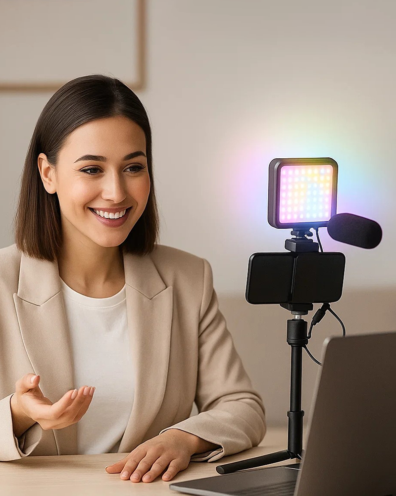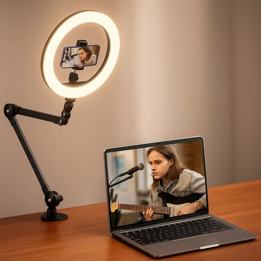 Bring studio-quality lighting wherever creativity strikes. With perfectly balanced illumination, adjustable brightness, and a sleek, portable design, our ring light ensures every frame looks professional — from casual video calls to high-quality vlogs and product shoots.