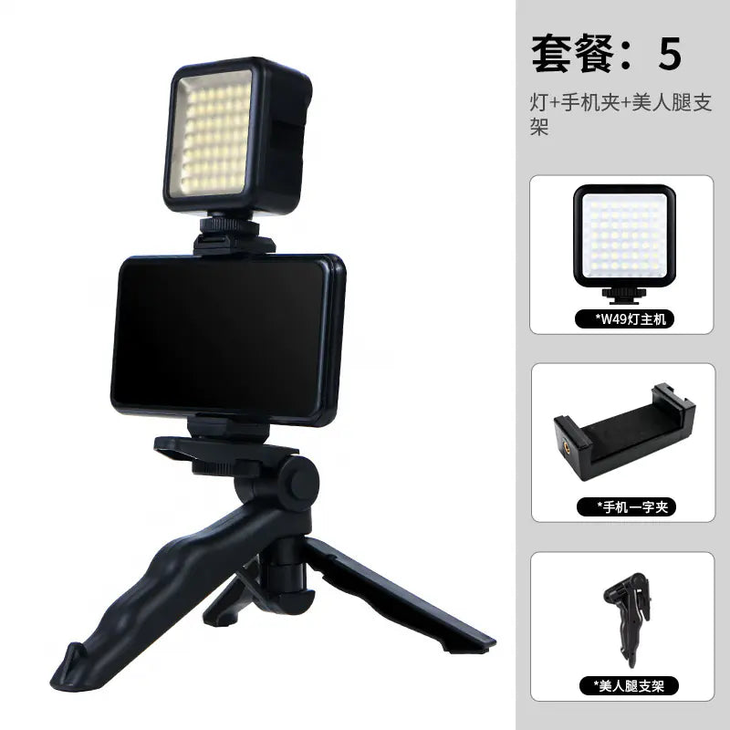Check out our selection of configurations: Single lamp set, Lamp + desktop tripod, Lamp + hot shoe clip, Lamp + mobile phone clip + Beauty leg bracket, Lamp + MIC-01C microphone + mobile phone clip + reflex three-section bracket, Lamp + suction cup set, and Lamp + octopus bracket + mobile phone clip + microphone. Choose the best fit for your needs and elevate your content today!