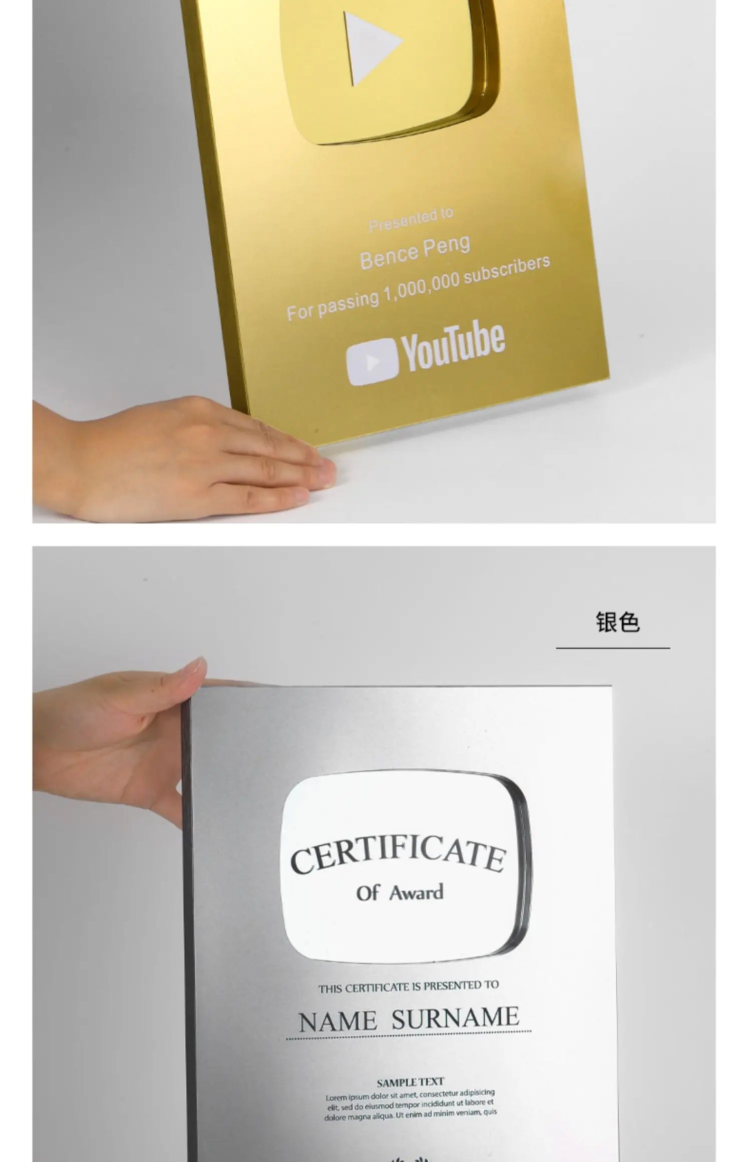YouTube Play Button Silver Gold YouTube Medal Wall...